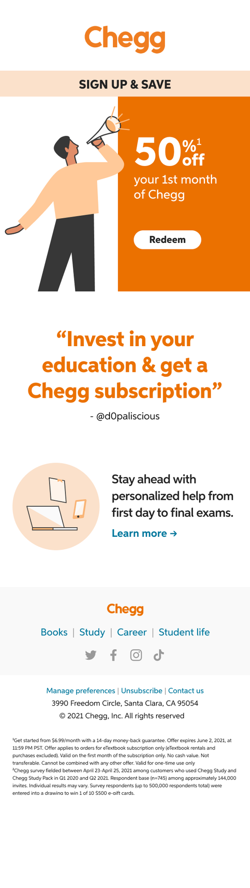 I’ve refreshed emails a bunch of time at Chegg, but I love how this project came together. With the new brand launching, we wanted to engage users with new and old features on the site by reimagining onboarding emails. These emails focus on using the data we know to personalize the email’s content. It hones in on exactly what study support that student needs for that moment in the semester.
